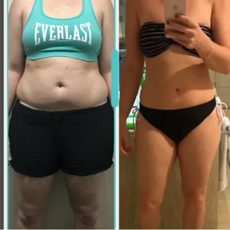 Doing the BASE program with Coach JD has been amazing. The customized workout program fits my busy schedule, and the app helps me stay on track with calories and protein visually. JD is always there to answer questions and provide assistance. The Before/After feature for progress pics is a highlight, showcasing the incredible changes in my body. Starting at a size 12-14, I'm now a comfortable size 8 in the 50s weight range. I feel fitter, look better, and have more energy as a mother!
